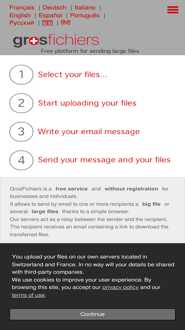 92%Send up to 50 GB - Free and without registration - Keep your transfers for up to 30 days.