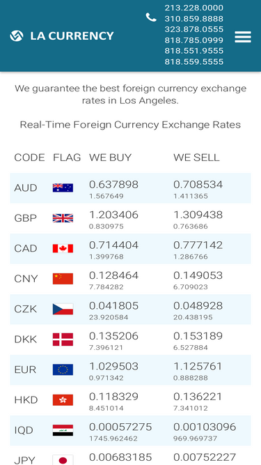 56%Best Foreign Currency Exchange Rates Guaranteed in Los Angeles. No Fees, No Hidden Charges for Foreign Currency Exchanges. Real time Currency Exchange Rates