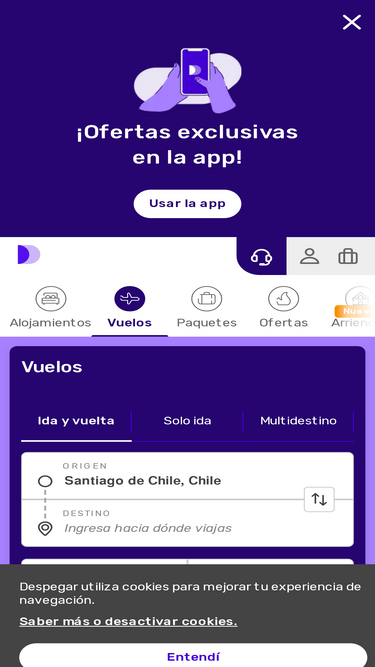 Despegar es la agencia líder en viajes de Chile y América Latina. Vuelos, alojamientos, paquetes, actividades, arriendo de autos y mucho más.
