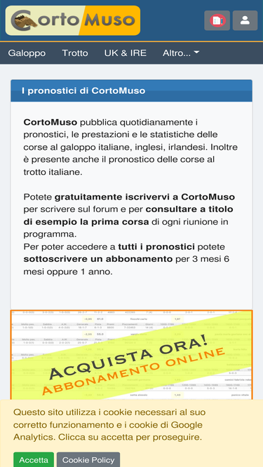 76%cortomuso pubblica quotidianamente i pronostici, le prestazioni e le statistiche delle corse al galoppo italiane, inglesi, irlandesi e degli stati uniti. inoltre è presente anche il pronostico delle corse al trotto italiane.