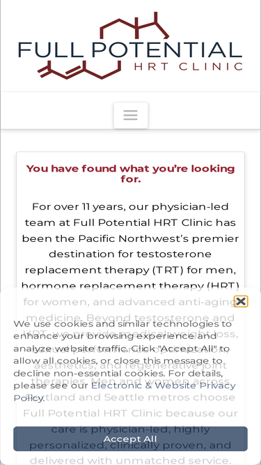 100%Our SW Portland flagship clinic provides men & women with testosterone (TRT), HRT, medical weight loss, sexual vitality, aesthetics & regenerative therapies.