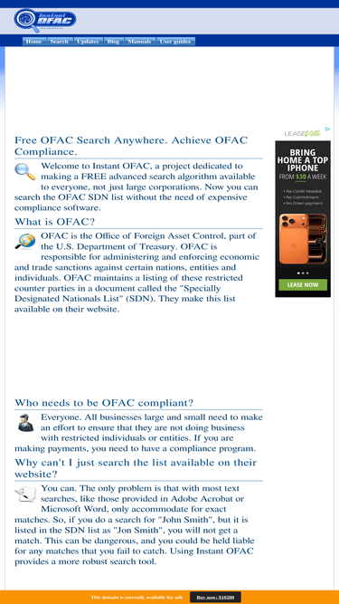 100%instant ofac search, ofac check and other compliance, aml, kyc, and patriot act resources.
