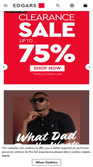 Shop online at EDGARS. We have great deals on clothing, shoes, cellular, homeware and beauty products. ✓ Free Delivery ✓ Free Returns ✓ Click and Collect ✓ Payment options for everyone