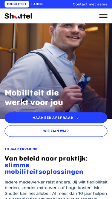 81%Wij zijn Shuttel. Dé zakelijke mobiliteitspartner. Wij brengen je mobiliteitsbeleid in praktijk met mobiliteitsoplossingen op maat.