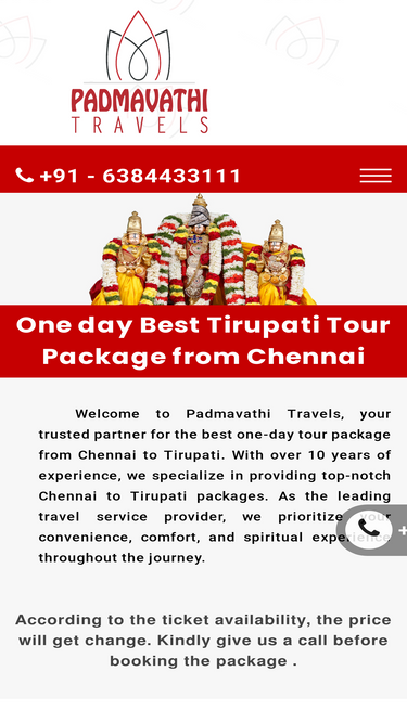 100%Experience hassle-free Tirupati trip with Padmavathi Travels. Call us at 6384433111 / 6384433222 to book our comfortable A/C cars and enjoy breakfast, lunch, and 300rs special entry tickets.