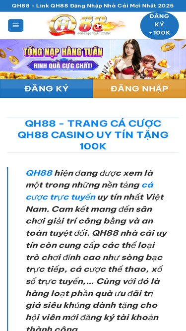 73%Qh88 HD là thương hiệu nhà cái đỉnh cao số 1 Châu Á, cung cấp đa dạng sản phẩm trò chơi như Live Casino, bắn cá 3D, cá cược thể thao,... Qh88 tặng 100k ✔