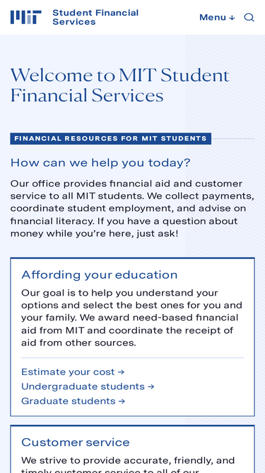 98%At Student Financial Services, we work to make MIT affordable for every family so their students can join our community and make the most of their education.