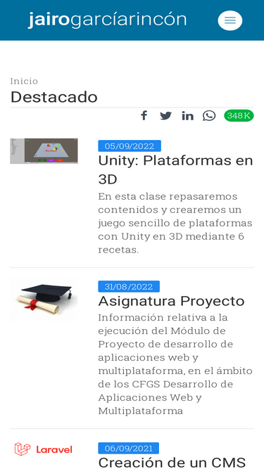 90%información personal, portfolio, tutoriales, cursos, juegos y otros contenidos relacionados con la programación y el desarrollo web y los lenguajes html, css, javascript, php, java, c# y sql, así como desarrollo de videojuegos con unity y despliegue de servidores con amazon web services. todos ellos se imparten a empresas y en ciclos formativos de grado medio y superior.