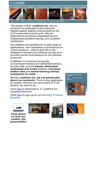 92%Formerly Lackawanna, CCLI - CC Leathers - Canadian Contract Leathers Inc. is a distributor of the finest upholstery leathers and architectural leathers available.