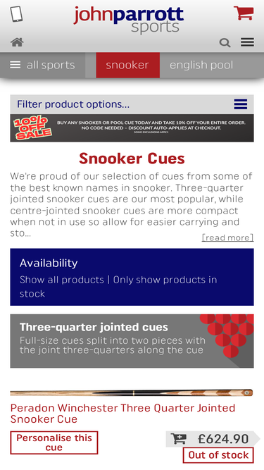 100%offers snooker cues, pool cues, pool tables and cases up to 60% off online shopping with guaranteed next day delivery for snooker cue and pool cue.