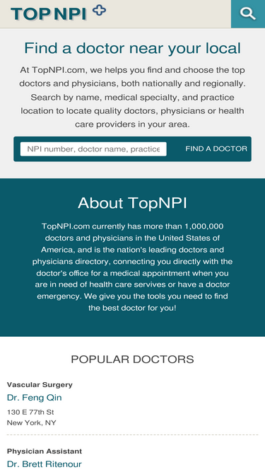 45%doctors and health professionals in the us, topnpi.com helps you choose the best doctors, find america's doctors by medical specialty, npi number lookup.