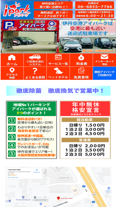 79%【空港1分】伊丹空港アイパークは空港から最も近い民間駐車場!エリアno1の取扱実績と安心・格安パーキング,無料送迎付き!ネット予約・ペットホテル・伊丹空港の駐車場といえばココ!