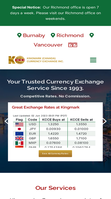 74%Kingmark (Canada) Currency Exchange Inc. is an established money service business providing foreign currency exchange services in Greater Vancouver since 1993.