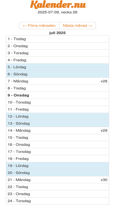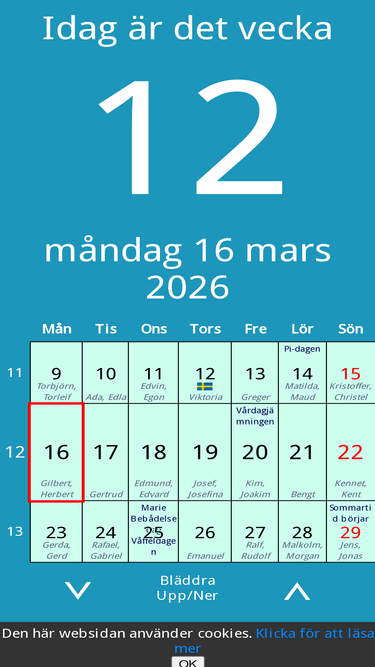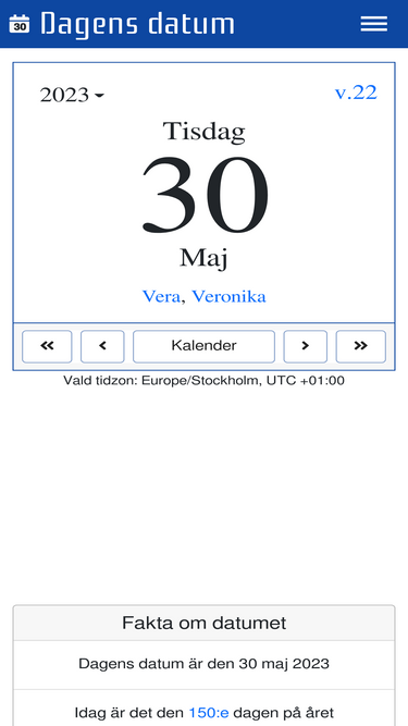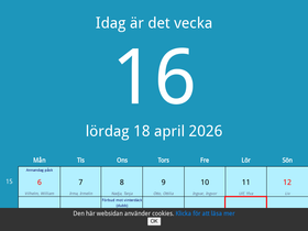 82%vi visar dagens datum, vilken vecka det är, vem som har namnsdag, solens upp- och nedgång och en allt annat som rör dagens datum idag!