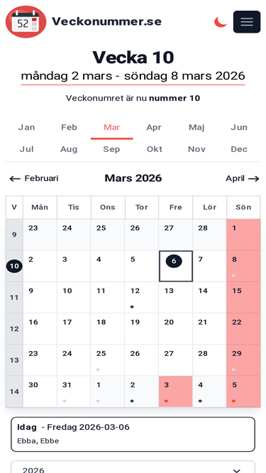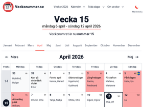 här kan du enkelt kolla vilken vecka ett visst datum har eller bara vilken veckodag ett datum har.