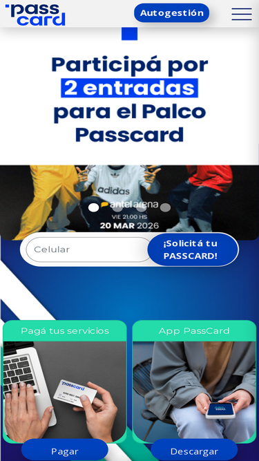 85%Con tu tarjeta de crédito PassCard, tenés descuentos todos los días, compras en cuotas sin recargo, retiros en efectivo entre muchos beneficios más.Pedila ahora!