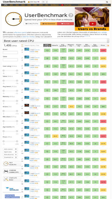 96%PassMark Software - CPU Benchmarks - Over 1 million CPUs and 1,000 models benchmarked and compared in graph form, updated daily!