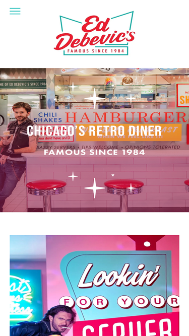 Ed Debevic's is one of Chicago's most famous retro-themed 50s diners. Snarky servers in flashy costumes serve up burgers, cheese fries, milkshakes, & more!