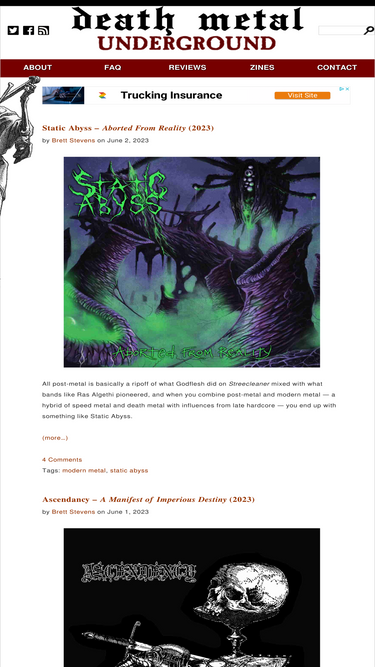 100%Metallica - Speed Metal: Death Metal Underground review and discography of heavy metal band Metallica in the Speed Metal genre with other underground death metal, black metal, speed/power metal, grindcore, thrash and doom metal band reviews, philosophy, tracklist, mp3 sample, image and discography. Metallica is a Speed Metal band which we review according to Speed Metal genre standards, with a complete review of all albums by the band Metallica in the Speed Metal heavy metal genre, including Metallica discography, tracklist, cover images, Speed Metal genrology, mp3 samples and Metallica interviews.