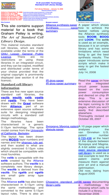 55%vlsitechnology.org has a downloadable standard cell library, the vsclib, with full scripts for cell characterisation in a generic 0.13um technology. a web databook helps in reviewing cells.