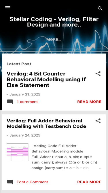 Stellar Coding is blog about C Programs, VLSI, Verilog Programs, MATLAB program, Filter Designing Tools and Calculators and many more.