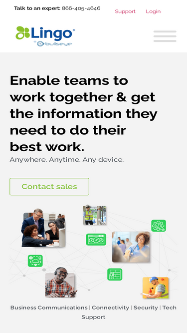 100%Enable teams to work together & get the information they need to do their best work. Anywhere. Anytime. Any device. Contact sales Business Communications | Connectivity | Security | Tech Support Simply the best 5G Coverage Lingo uses the nation’s top 3 5G networks to deliver the fastest 5G wherever you are, dual-SIM equipped for