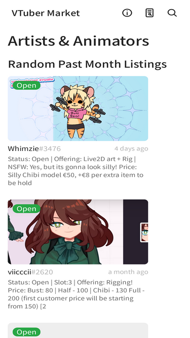 85%vtuber model artists and riggers open for commission from the live2d discord community.