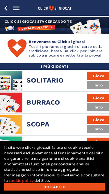 71%sfida altri giocatori a scopa, burraco, briscola, tresette, scala 40, peppa, bestia, cirulla, poker 5 carte, asso pigliatutto, bestia, scopone, sette e mezzo, telesina, solitario. conosci nuovi amici e chatta con chi vuoi. scopri i nostri servizi come i regali virtuali, messaggi privati, e il nostro club.
