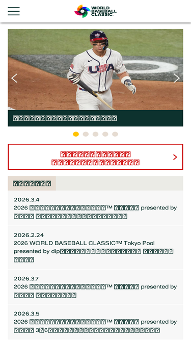 100%2026 WORLD BASEBALL CLASSIC™の日本語サイト。ニュースやチケット、試合結果、グッズ情報など。