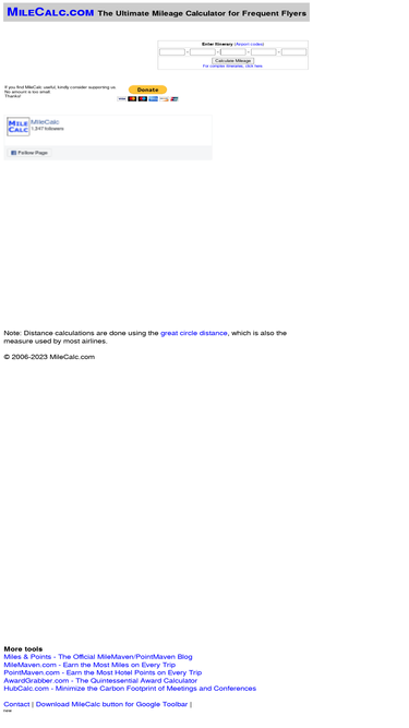 milecalc is the ideal air mileage calculator for frequent flyers, with pre-set options for american airlines, delta, united, and us airways