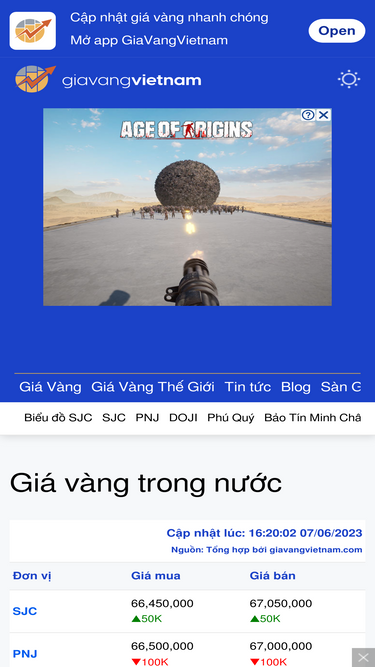 66%Hướng dẫn chèn giá vàng SJC, PNJ, DOJI, Phú Quý, Bảo Tín Minh Châu, Mi Hồng, biểu đồ giá vàng SJC gần đây vào website của bạn.