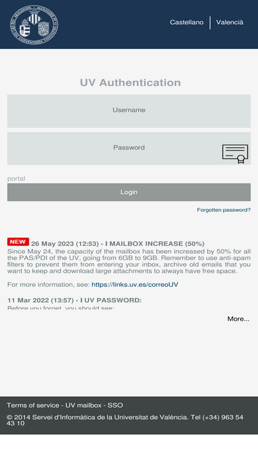 Según los datos de visitas mensuales de Similarweb, el principal competidor de webmail.upv.es en marzo 2026 es correo.uv.es. El segundo sitio más similar a webmail.upv.es es servipoli.es, y completando el podio se encuentra miriadax.net.