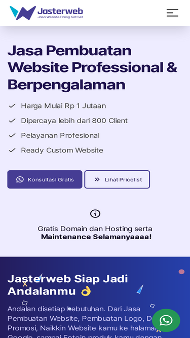 Jasa pembuatan website profesional di Indonesia. Gratis Domain + SSL Selamanya. Desain Website SEO & mobile Friendly.