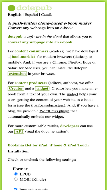 tool for automatic conversion to the main e-book formats: bookmarklet, chrome, firefox, safari and edge extension, widget and api