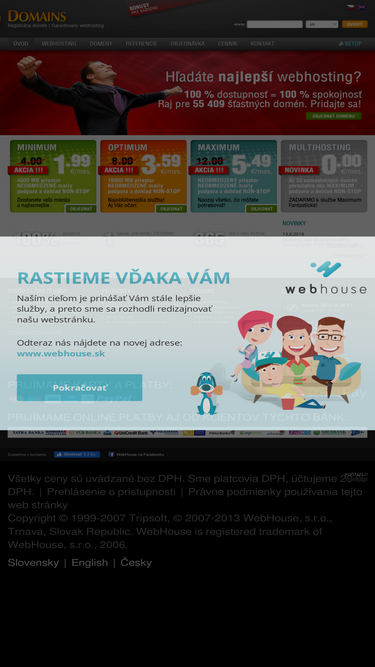 100%Domain registration and web hosting, this is WebHouse - the Home of Happy Domains. Hosting with 100% guaranteed uptime. We manage more than 56,000 domains.