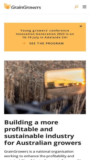 73%GrainGrowers is a national organisation working to enhance the profitability and sustainability of Australian grain farmers. Australian growers are at the heart of all that we do and the focus of our work.