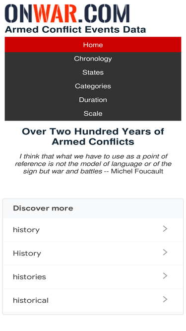 100%homepage of the armed conflict events data listing modern and historical interstate, intrastate, extra-state and non-state wars and conflicts that have been initiated in any given year, worldwide.