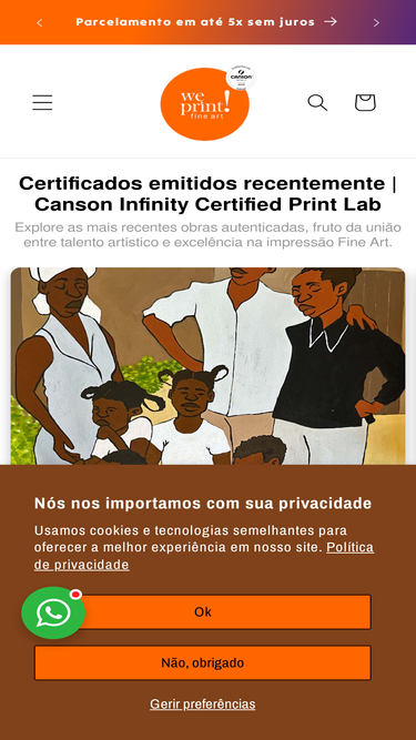 100%A WePrint! Fine Art é reconhecida como um dos maiores estúdios de impressão certificados do país, especializado em oferecer impressões de alta qualidade para artistas, fotógrafos e designers.