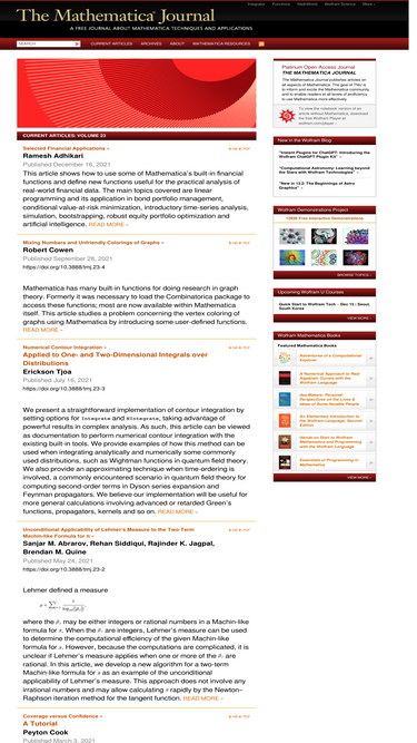 83%free articles on all aspects of mathematica. for users at all levels of proficiency to use mathematica more effectively. news about products and events.