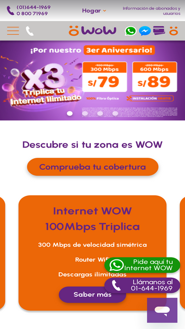 97%WOW Perú, Internet 100% Fibra Óptica