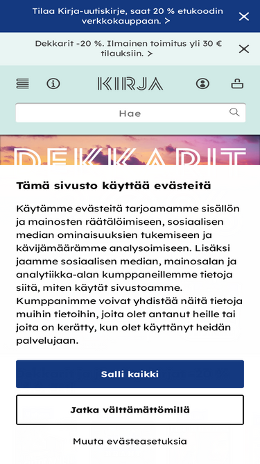 25%Tutustu Kirja-verkkokaupan kirjablogiin. Artikkeleista löydät kirjavinkit ja -suositukset, kirjailijahaastatteluita sekä uutisia kustantamoidemme uutuuskirjoista. Kirja.fi verkkokauppa on Werner Söderström Oy:n kirjakauppa verkossa, jossa myydään kustantamoidemme kaikki painetut kirjat klassikoista uutuuskirjoihin.
