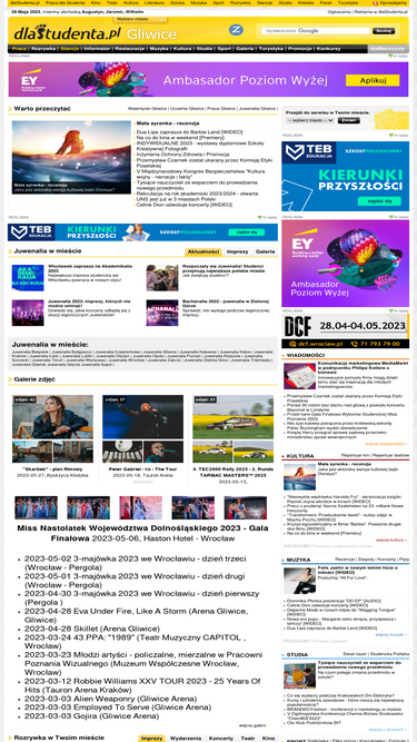 88%studencki portal gliwice.dlastudenta.pl to rozrywka, kultura, muzyka, studia, praca, stancje w gliwicach - wszystko czego potrzebuje student.