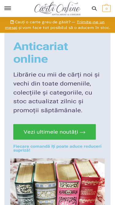 59%Librăria Cărți-Online oferă mii de cărți din toate domeniile, colecțiile și autorii, noi și de anticariat, disponibile în stoc și la prețuri accesibile.