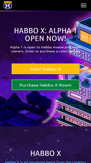 74%Habbo X is a game from the creators of the iconic Habbo Hotel that focuses on community building, interoperability, and play-and-earn mechanics.
