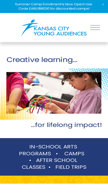 63%A nonprofit dedicated to engaging Kansas City youth in the arts through in-school programing and out-of-school camps and classes. KCYA’s mission is to promote creativity and inspire success in education. We work in partnership with a team of professional Teaching Artists and local youth arts organ