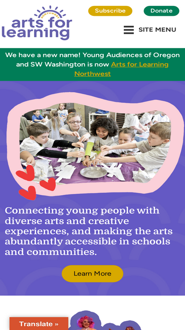 82%Arts for Learning Northwest brings arts and education together by connecting talented teaching artists with school and community programs in Portland Metro, SW Washington, and Central Oregon. We inspire young people and expand their learning through the arts.