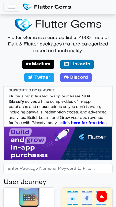 94%Articles and Reports page of Flutter Gems. Flutter Gems is a curated list of Dart & Flutter packages that are categorized based on functionality. Flutter Gems is also a visual alternative to pub.dev