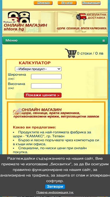 92%Оставете досадните насекоми навън Комарник с панти - приложение Най-разпространеният модел комарник. Може да се отваря, защото е захванат към дограмата с панти, а е значително по-евтин от останалите модели отваряеми мрежи против насекоми. Подходящ за прозорци и балконски врати, които не се използват интензивно. Срещу доплащане продуктът може да бъде изработен с с антибактериална мрежа. Комарник с панти - мнения За дни без мухи, нощи без комари и досадно жужене, утрини, в които се събуждате отпочинали, а не от бръмчене на нежелан гост. В съвременния живот и ежедневие, наситено с химия и все по-чести алергии, комарникът е надеждна механична защита от насекоми. По- добре да не ги допускаме в помещенията, вместо да ползваме препарати, които да ги отблъскват и други против ухапвани или намаляващи сърбежа от ухапване. Предпазва от ухапвания Осигурява спокоен сън Не позволява разпространението на бактерии Комарник с панти - цветове Можете да избирате между три цвята - бял, кафяв и златен дъб. Комарници - цена Цената на комарниците варира в широк диапазон и зависи от размера и цвета. Комарници с размер по-малък от 0,5 м² се продават на цена за 0,5 м². Ако се нуждаете от консултация, не се колебайте да се свържете с нас. Заедно ще намерим решение, което отговаря нуждите и бюджета Ви. Важно Посочената цена се отнася за бял комарник с най-маките възможни размери за модела. Въведете свои размери и калкулаторът ще Ви изчисли цена в реално време. Комарници - монтаж Комарниците с панти се монтират пред отвора на прозореца или вратата. Необходимо да имате достъп отвън до прозореца или вратата.