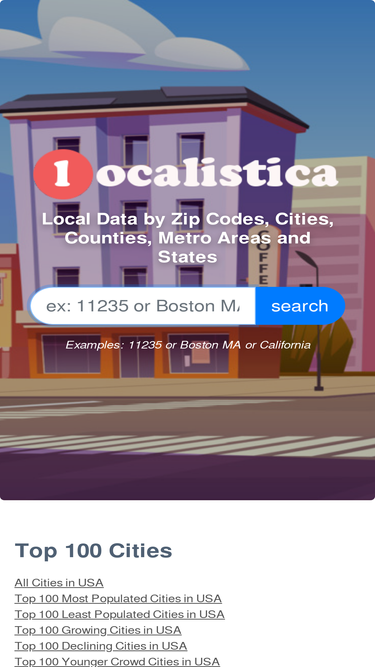 82%search zip codes, cities, states in usa at localistica.com
