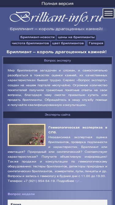 99%информационный портал, посвященный самым дорогим и красивым камням - бриллиантам. алмаз уже на протяжении многих столетий является популярнейшим и самым дорогим драгоценным камнем. информация об отличиях алмазов, о ценах, свойствах, происхождении. вы узнаете об истории бриллиантов и о самых известных бриллиантах.